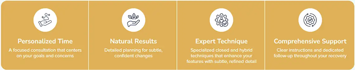 Dr. Daniel Golshani is known for his advanced closed hybrid technique, which avoids external scars and supports a smoother early recovery process. His approach is artistic, personalized, and centered on results that blend naturally with your face.